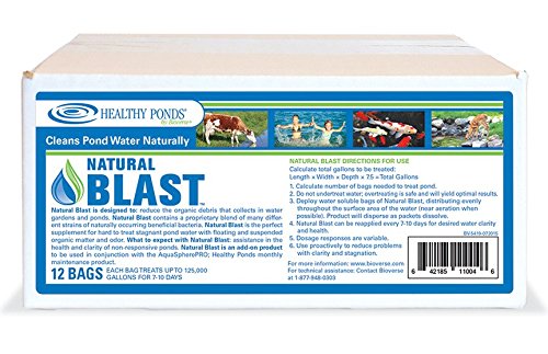 Healthy Ponds 11004 Natural Blast Pond Water Cleaner, 12 Water Soluble Packets; Each Packet Treats up to 125,000 Gallons for 7-10 Days