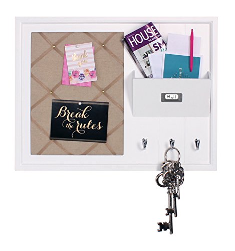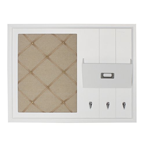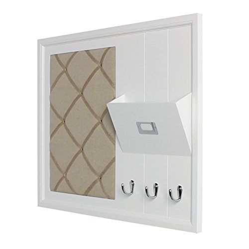 DesignOvation Dagny Decorative Home Organizer with Fabric Pin Board, Mail Holder, Key Hooks, White (209292)