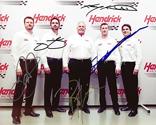 5X AUTOGRAPHED Rick Hendrick / Jeff Gordon / Dale Jr. / Jimmie Johnson / Kasey Kahne HENDRICK MOTORSPORTS GROUP PICTURE (Team Signed) Picture NASCAR 8X10 Inch Glossy Photo with COA