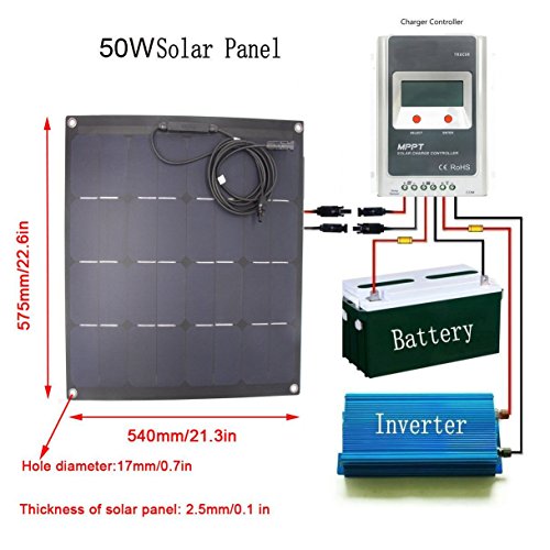 - Powerful and Lightweight: this solar panel packs 50W of power yet is only 2.5mm thick , making it easier to transport, hang, and remove