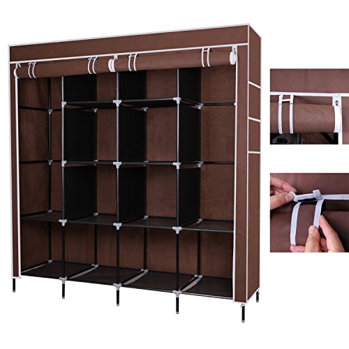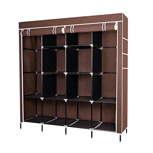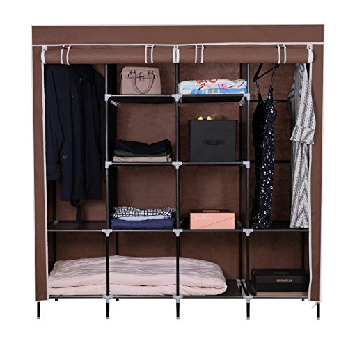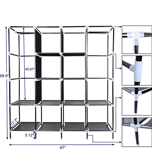 BASTUO Closet Portable Wardrobe 67" Non-Woven Fabric Clothes Storage Rack Organizer with 12 Shelves with 2 Side Pockets Brown