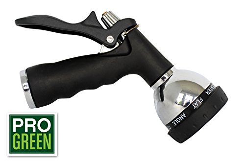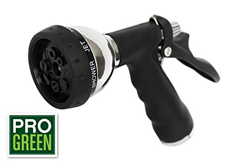 Garden Hose Spray Nozzle by Pro Green | Heavy Duty 8 Spray Metal Zinc Alloy | Chrome Finish | Soft Grip Water Nozzle | Full Warranty