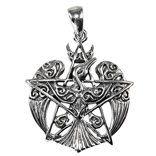-. Title : Sterling Silver Crescent Raven Pentacle Pendant