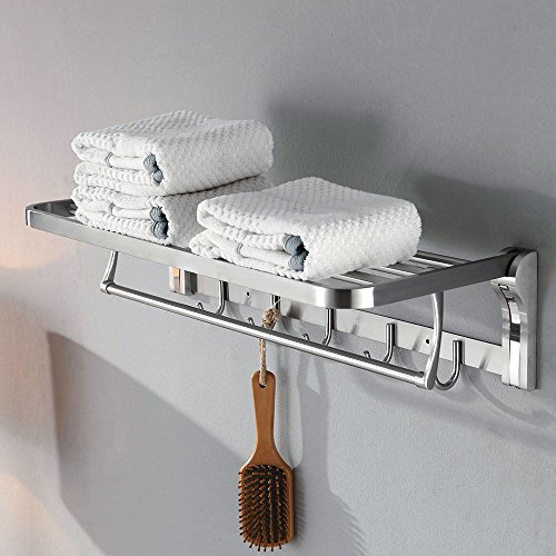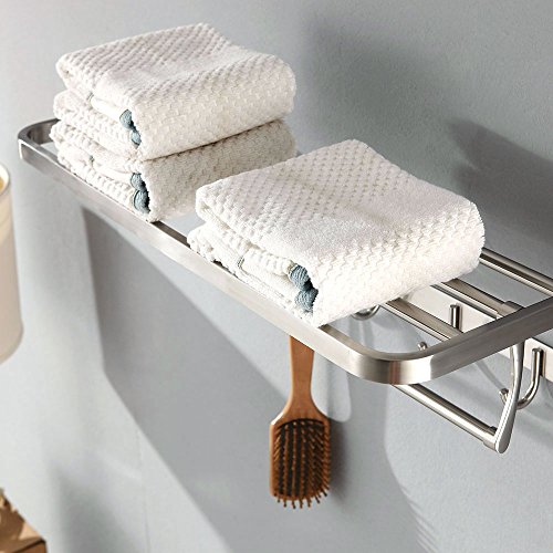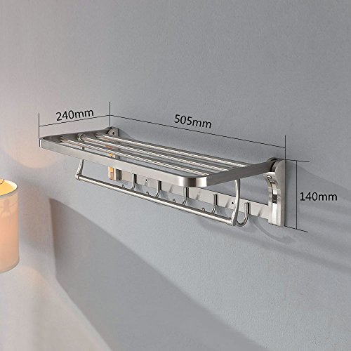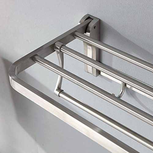 19.7 Inch Stainless Steel Bath Towel Rack Bathroom Shelf with Double Towel Bar 50 CM Storage Organizer Contemporary Hotel Square Style Wall Mount, Brushed Finish