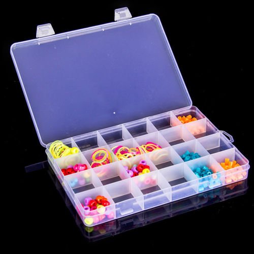 -. Feature : Material: Hard Plastic / Size:19.5cmx13cmx2.2cm/7.68"x5.12"x0.87" / Color: As the picture shows / Multifunctional design It can be used to store earrings, necklace, bead, finger ring or other small jewelry, also is used for storing fishing hook, fish lure bait or other small tool kit / Package includes: 1 x Plastic 24 Compartment Storage Box Jewelry Earring Bin Case Container
