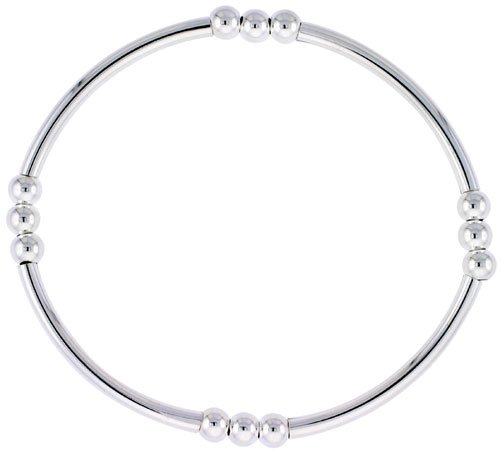 -. Title : Sterling Silver Stretch Bangle Bracelet, 4 Section Triple Beads