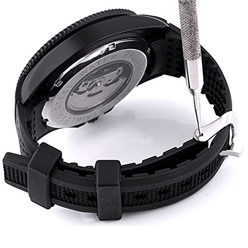 Studio : Amycsico Publisher : Amycsico Product Description Changing your watch strap or buckle is a simple process that can change the look and feel of your favorite watch cheaply and easily - you just need to have the correct tool for the job! The "V" end hooks spring bars to depress them easily in order to remove a watch band or a buckle, it will allow you to manipulate the spring bar pins accurately which will make attaching buckles to your band or bands to your watch very quick and easy. The pin end is ideal for pressing spring bars out of the watch band, depressing recess buttons or spring bars through access holes.These are high quality stainless steel spring bar pins. They are the bars that are used to connect your watchband to your watch. They can also be used to connect a buckle or clasp to your watchband. The ends have two flanges that allow you to easily depress the spring to install or remove. 0