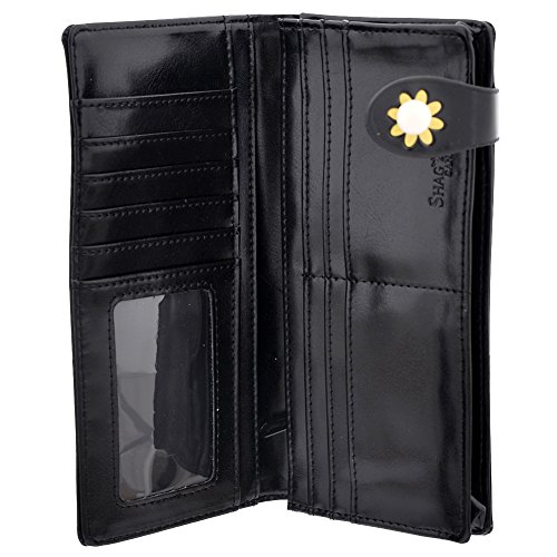 -. Binding : Apparel -. Brand : Shagwear -. Department : womens -. Feature : The exterior closure features a magnetic snap button, ensuring your wallet stays closed and secure. / Interior is complete with a zip change section and Shagwear logo. / This beautiful and unique wallet will keep you looking good and your money secure. / Famous Shagwear Brand / This wonderfully designed wallet features an 11 card holder, plus a bonus clear ID holder. -. ProductGroup : Apparel -. ProductTypeName : ACCESSORY -. Title : Shagwear Womens Snap Closure Clutch Wallets World Travel Designs