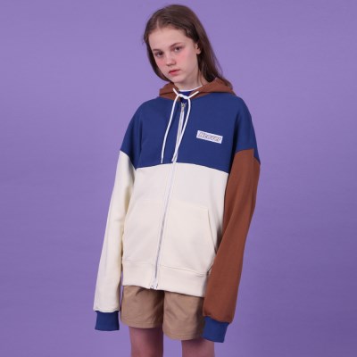 Color block hoodie zipup-blue