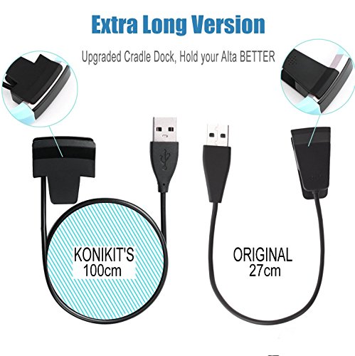 Fitbit Alta Charger, Konikit Replacement USB Charging cable for Fitbit Alta Wristband Smartwatch Bracelet (1M, Black)