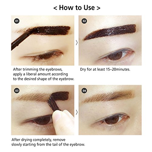 How to use : 1. After trimming the eyebrows, apply a liberal amount according to the desired shape of the eyebrow. / 2. Dry for at least 15~20minutes. / 3. After drying completely, remove slowly starting from the tail of the eyebrow.