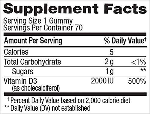 -. Feature : Contains 1 bottle of 70 gummies / Luminous Lemon flavor is from a sunny meyer lemon / Each gummy contains 2000 IU of Vitamin D3, which helps the body aborb calcium and promotes immune system