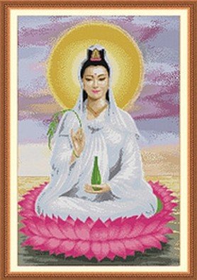 Happy Forever Cross Stitch,Chinese style figure, Lotus guanyin 1