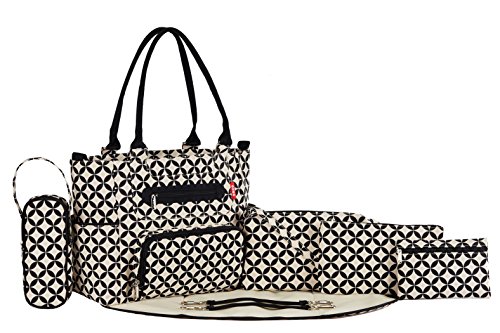 The Mommy Essentials 7-piece Diaper Tote Set is an unmatched value, and the complete solution for taking baby on the go. The large tote bag, a smaller purse with carrying strap for mom on the go. It also comes with a matching changing station, two different size of accessories cases for smaller items, one insulated bottle bag, and a pair of grips strollers attachments. This set is everything a busy mom needs. 100% High quality item. Made in USA or Imported.