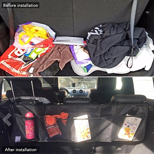 ★ SAY GOODBYE TO MESSY VEHICLE TRUNKS?- Whatever you bring, wherever you go, your trunk can be organized. This 9 MOON auto trunk storage net has 4 deep, strong pockets to ensure items do not fall out or roll around while driving. ★ SAVE MONEY?- No more damaged goods. 600D PVC which is much stronger than most competitors- will never rip or break so buy a good quality. Spend the money once on a good quality storeage unit. ★ EASY TO USE AND STORE AWAY?- Collapsible, opens and closes in under a second. Secures with easy snap-shut buckles to easily carry the behind seat truck organizer to and from your vehicle. Lightweight and rolls away for easy storage. ★ UNIVERSALLY COMPATIBLE?- Can be use in all cars, SUVs, minivans, trunks and many boats and watercrafts. Fully adjustable headrest straps to fit back seat or trunks of most vehicles. ★ MULTIPURPOSE?- Family car organizer. Car storage for kids toys, vehicle spares, snacks, pet toys, baby supplies, cycling gear, soccer equipment, folding tool and car supplies organizer. ★ 100% SATISFACTION GUARANTEE?- No risk to you. We stand behind all of our products and we are dedicated to providing our customers with the best possible shopping experience.