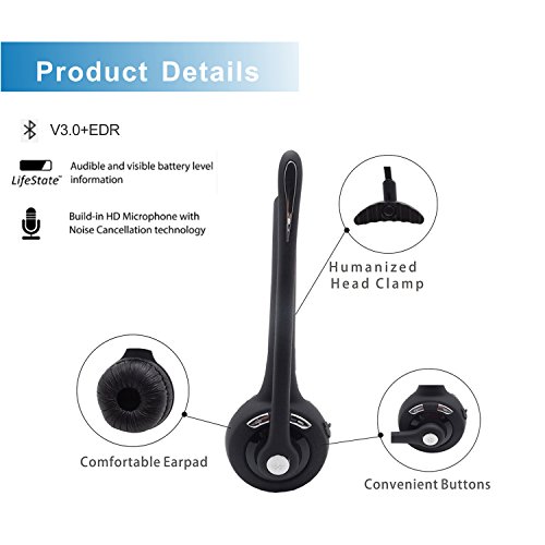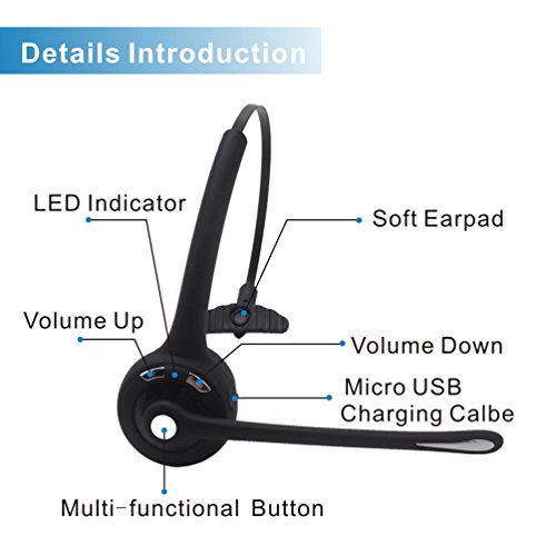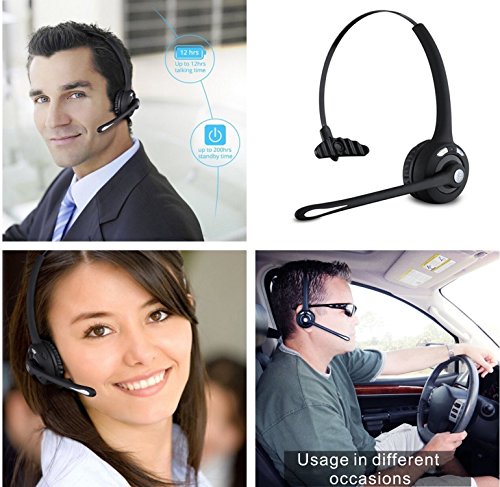 iSKUKA Bluetooth Headset for Truck Drivers Office Telephone Operator Hands-free Calling Single Track Over the Head Design
