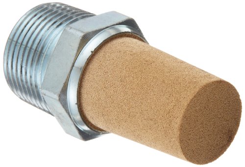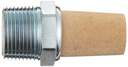 Parker EM100 EM Series Sintered Bronze Muffler/Filter, 1" NPT Male, 1-5/16" Hex Size, 250 psi