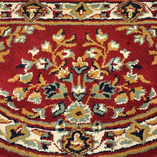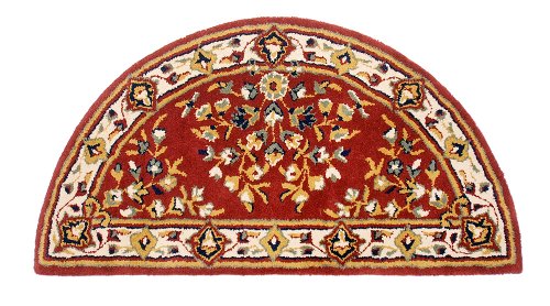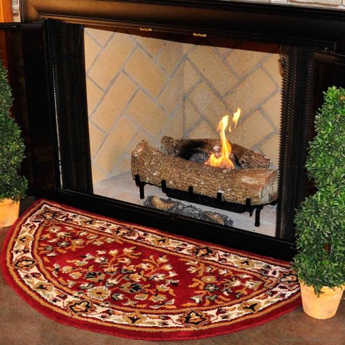 These hearth rugs are inspired by traditional Persian designs. They have five borders and floral medallions in the center. We offer them in rectangles and half rounds, in blue, beige and burgundy.Hearth rugs protect your floor and will add beauty and warmth to your fireplace. They can also be used as door mats or as occasional rugs throughout your house. (For indoor use only).All our hearth rugs are woven from the highest quality 100-percent virgin wool and dyed in rich saturated colors. They are fire resistant and meet federal requirements for surface flammability of small carpets (Part 1631 - FF2-70).Warning: your pets will probably make a bee-line for these rugs so they can bask in the warmth of the fire!Feature