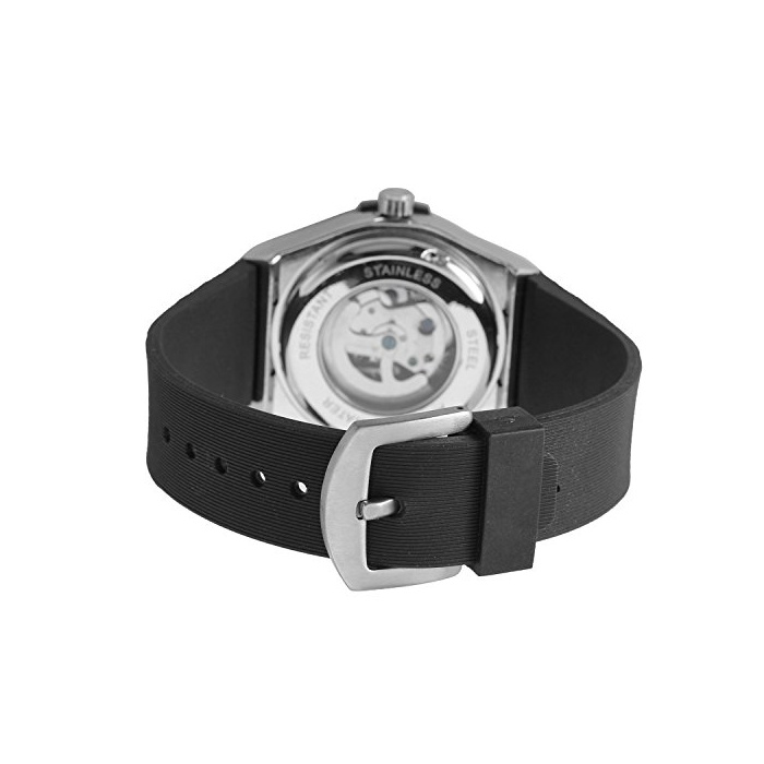 GuTe Mechanical GuTe출품 스켈리턴 기계식 실리콘 밴드 맨즈 자동 감기 손목시계 스포츠 틴 에이지《―》 블랙
