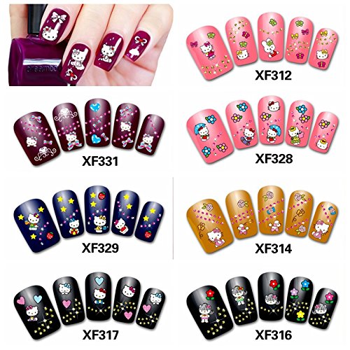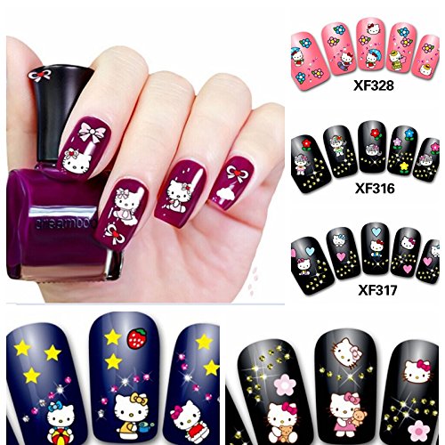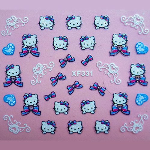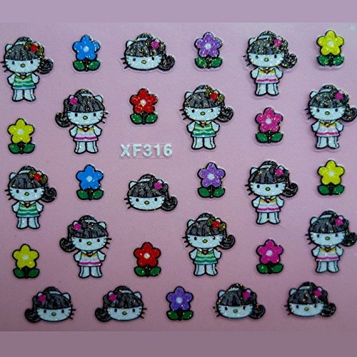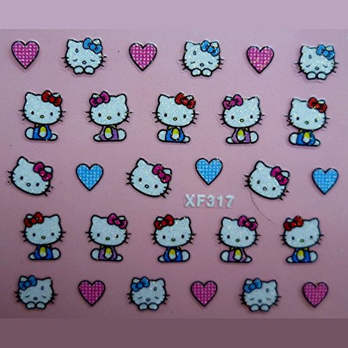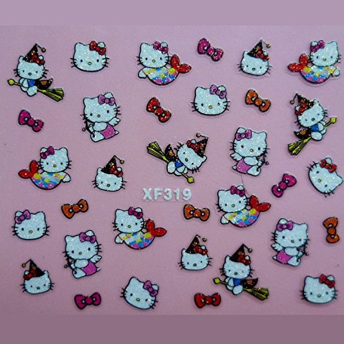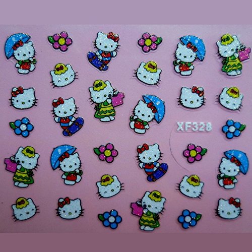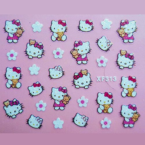 5 PCS 3D Nail Art Stickers Decals Tips Charming DIY Decoration Hello Kitty 10 Choices Shipping Time to USA is 8 to 15 days! Five sheet of adhesive nail art stickers to fit all fingernails, toenails and nail tips. No glue required and just peel off to remove.