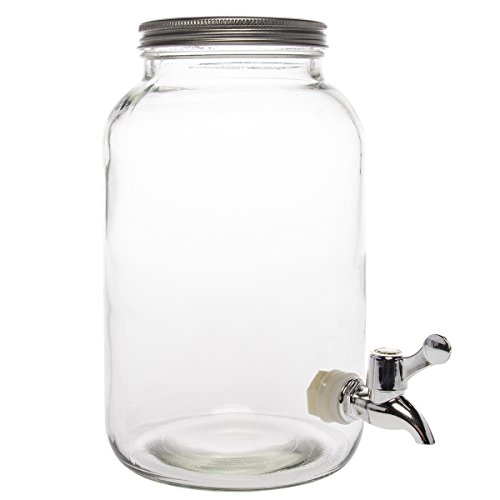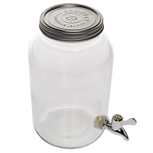 Product Description The clean taste from a classic mason jar is easy to serve in this Glass Drink Dispenser from Down Home Country Drinkware. The spout turns on with a simple twist, and the top unscrews for easy refilling to keep the refreshments flowing. 0