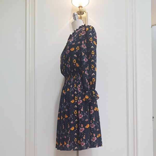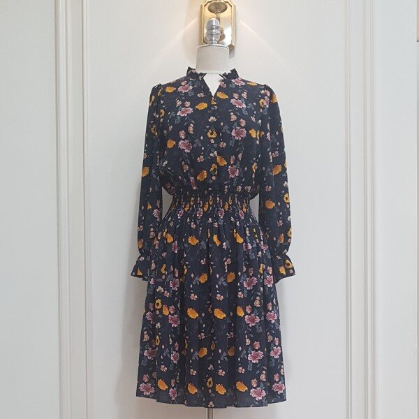 멀티컬러의 플라워 포인트가 돋보이는 원피스.