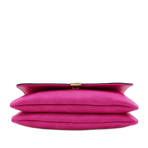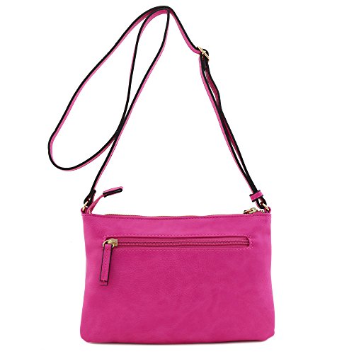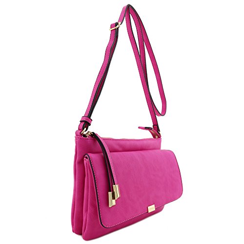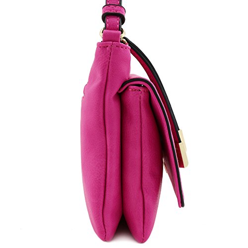 -. Feature : 9.5" (W) x 6.5" (H) x 2" (D) / Zipper and flap closure / Adjustable shoulder strap with 26" drop / Faux leather & gold tone hardware / 1 zipper pocket & 1 slip pocket inside