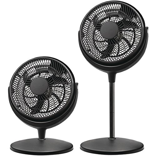 The Brentwood KoolZone 12 in. 2-in-1 Air Circulator Stand Fan can point vertically to ventilate your home with fresh cool air. There are 3 speed settings as well as 3 height options. It's also wall mountable and includes a built-in handle.Feature