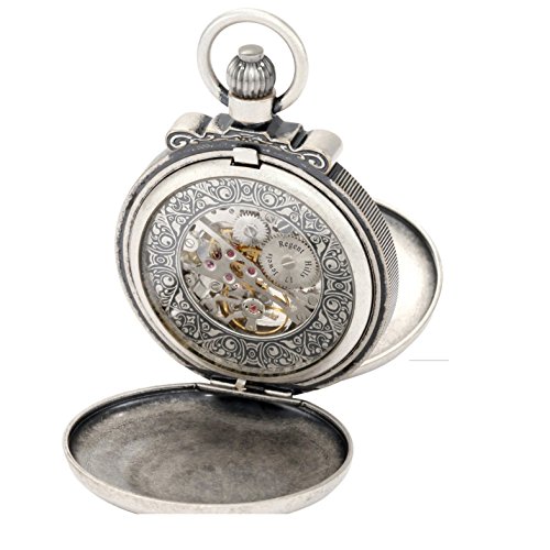 -. Title : Regent Hills Classic Antique Finish Double Hunter Case Mechanical Pocket Watch With Chain 565F07ATS-ALS2
