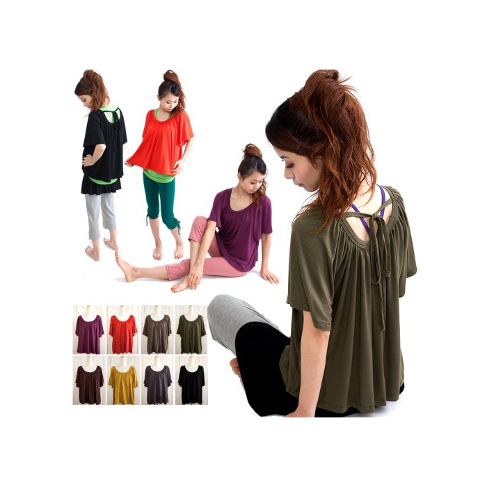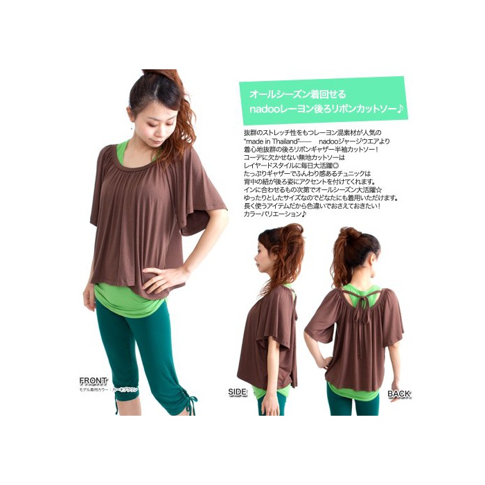 원본상품명: (ナドゥ) nadoo 全11色 バックリボン ゆるふわ ギャザ カットソ ヨガウェア フィットネス ダンス 135