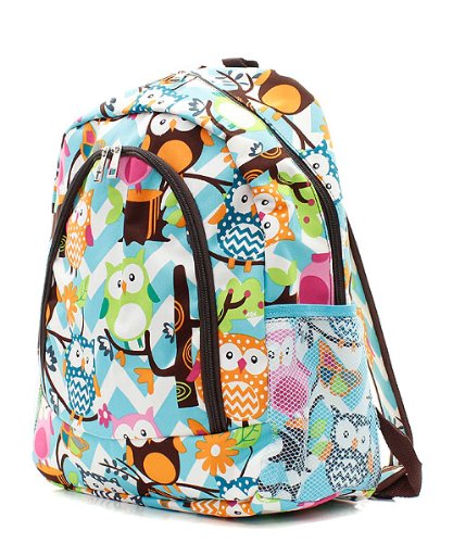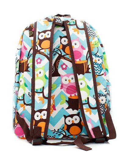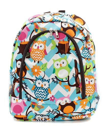 -. Title : Owl Chevron Stripe Large Canvas Backpack Handbag