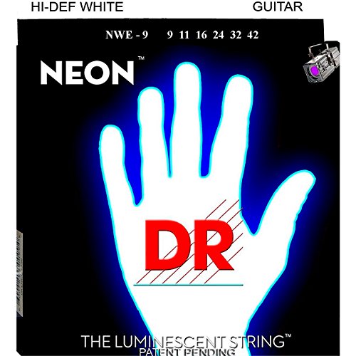 Studio : DR Music Publisher : DR Music Binding : Electronics Product Description DR NEON White Strings are super bright color-coated strings that sound clear, bright and musical and are an excellent idea for those wanting to add color to their rig. Super bright in daylight and under stage lighting, DR NEON White Strings are 100% black light active and glow strongly under UV lighting. These strings will last as long as a coated string should (three to four times as long as uncoated strings) while maintaining tone that is not only good, but better than top-quality uncoated strings. 0
