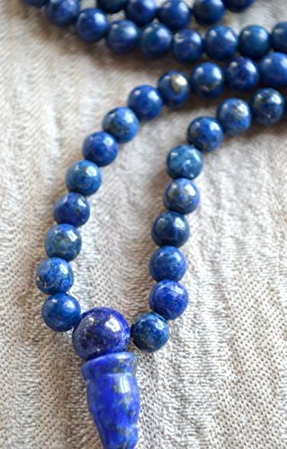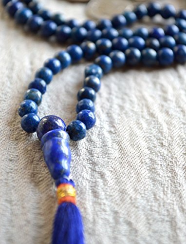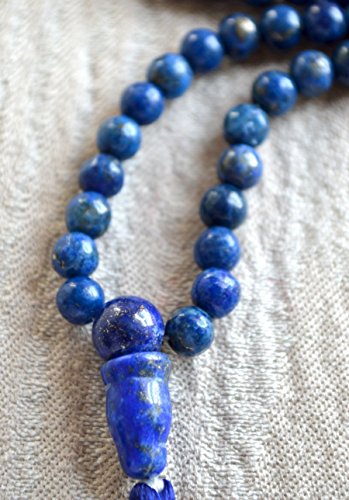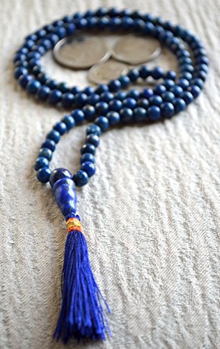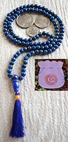 LAPIS LAZULI BEADS JAPA MALA NECKLACE. BLESSED & ENERGIZED TOP GRADE GENUINE QUALITY (108+1) HINDU TIBETAN BUDDHIST PRAYER KARMA 5-6 MM BEADS SUBHA ROSARY MALA FOR NIRVANA, BHAKTI, FOR REMOVING INNER DOSHAS, FOR CHANTING AUM OM, FOR AWAKENING CHAKRAS, KUN