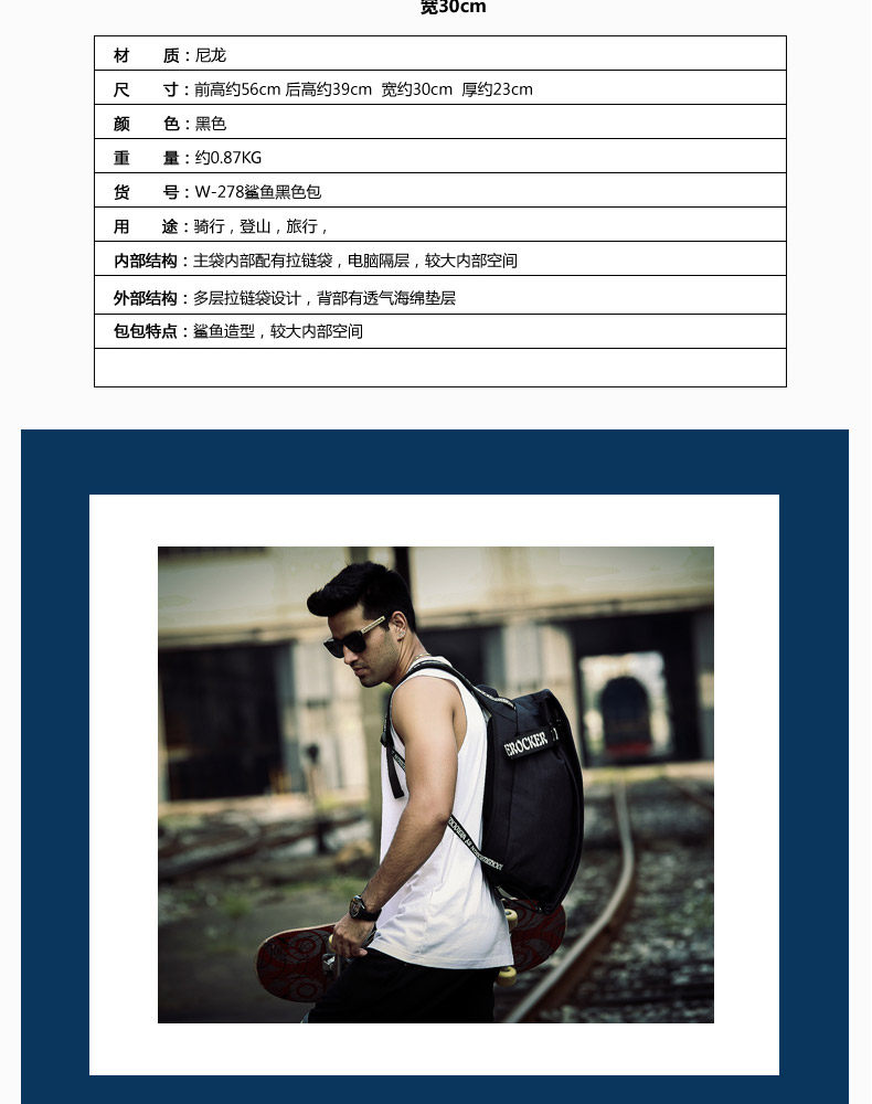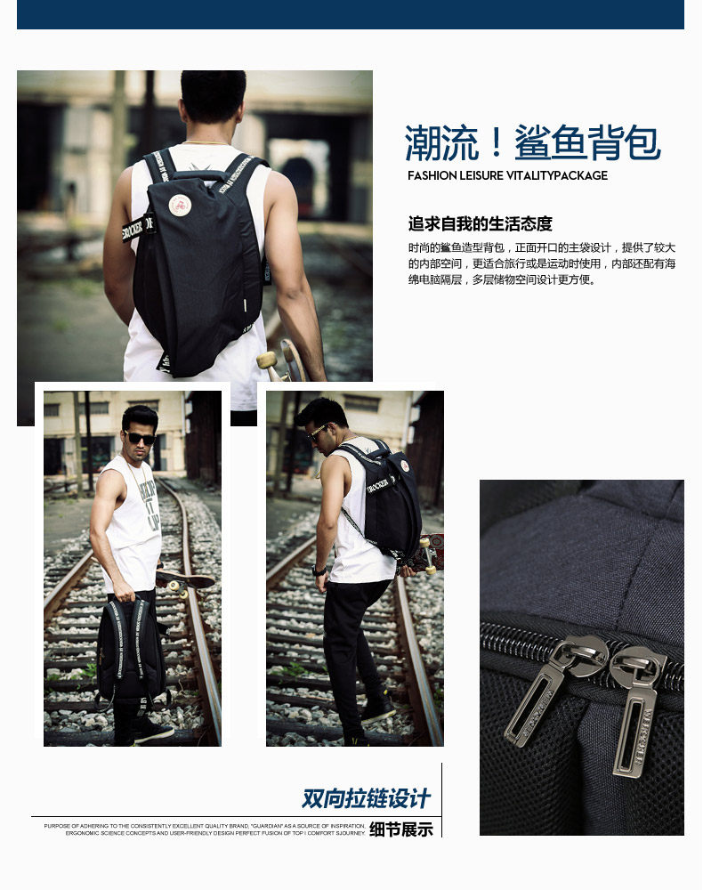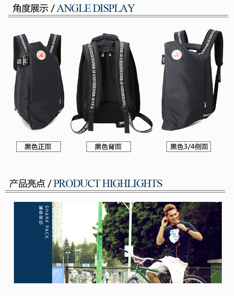 ?个性书包鲨鱼包韩版休闲运动包大容量背包男新款潮流双肩包?