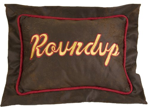 Product Description This Tahoe accessory pillow features an embroidered red and yellow “Roundup” on a brown faux suede. This pillow would be a great addition to any room. 0