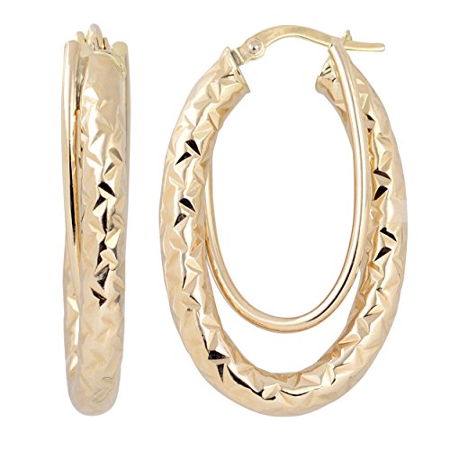 -. Title : 10k Yellow Gold Diamond-Cut And Polish Double Oval Hoop Earrings
