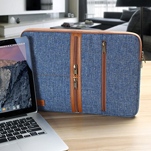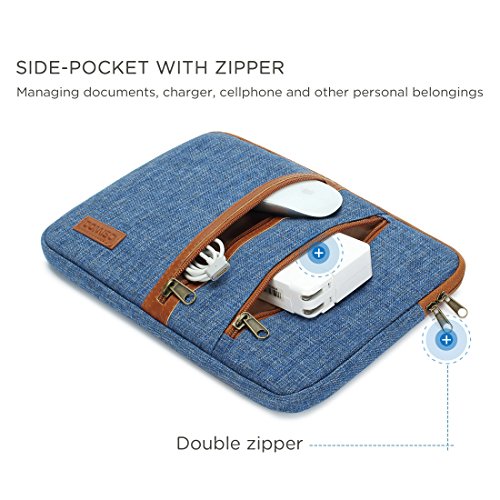 Product Description About product : This Multi-pocket laptop sleeve provides more independent space , is suitable for you to carry with travel or business . It made of breathable canvas material , light slim weight . Metal slider and leather puller is durable and gliding smoothly , providing convenient access to your laptop . 0