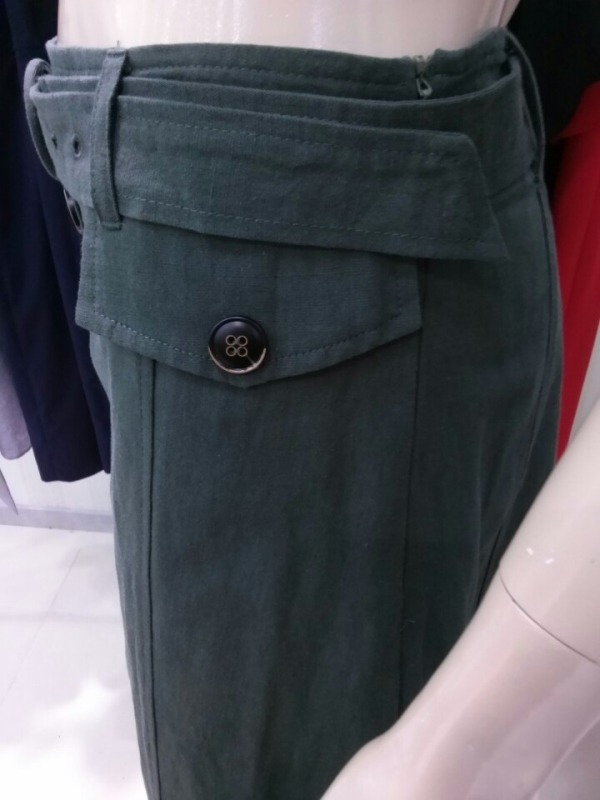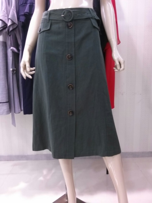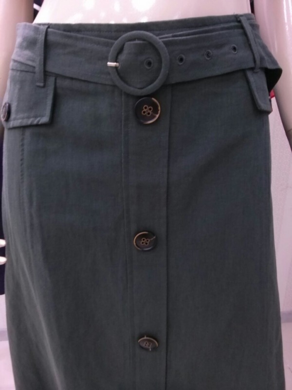 앞단추 장식이 포인트가 되어 멋스러운 A라인 미디스커트