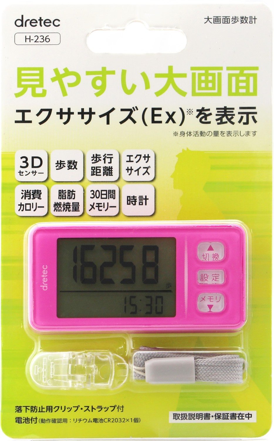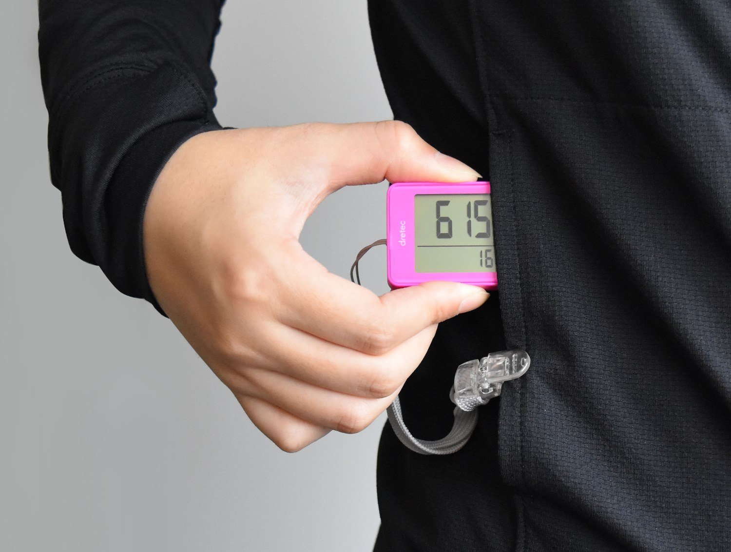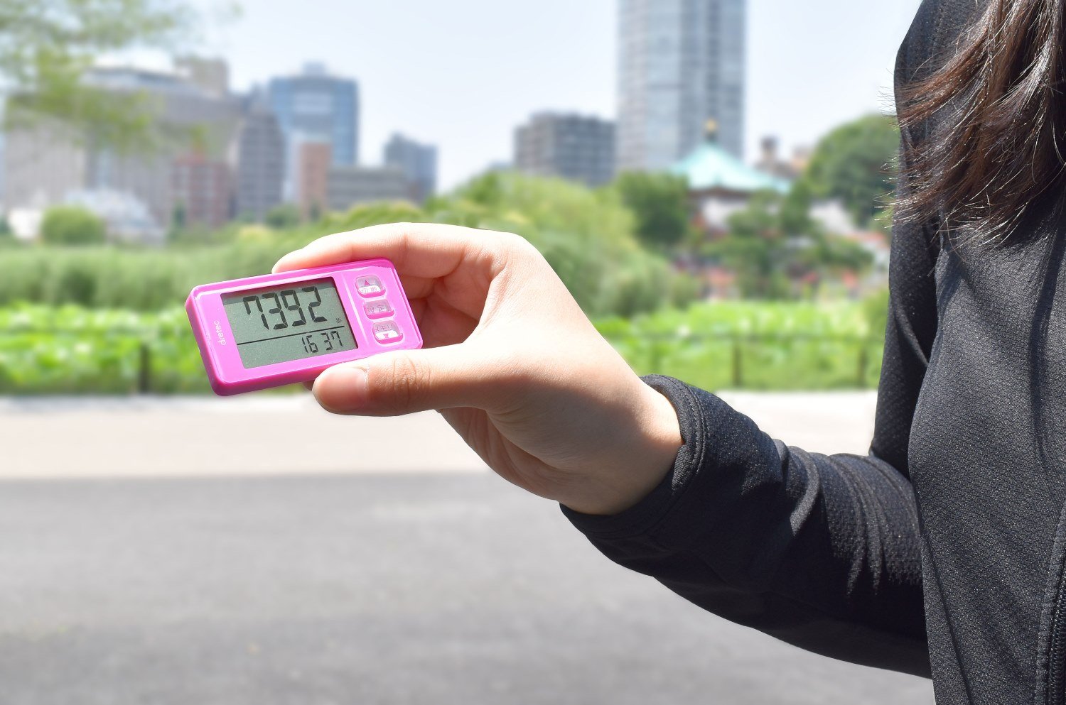 ● Displays the number of steps and calories burned on a large liquid crystal screen (40 × 27 mm).