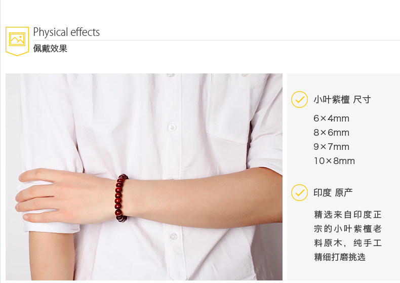 正宗印度小叶紫檀木佛珠男女单圈本命年手串素款手链鼓珠