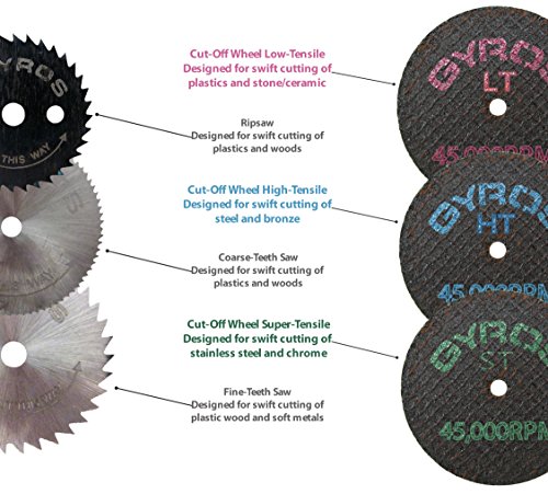 The Gyros 7 piece accessory pro-pak gives you a wide variety of cutting tools you may need for many different materials