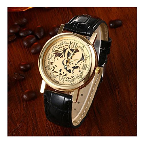 -. Title : Skeleton Mens Watches Boys Leather Band Quartz Stainless Steel Gold Wrist Watch Black