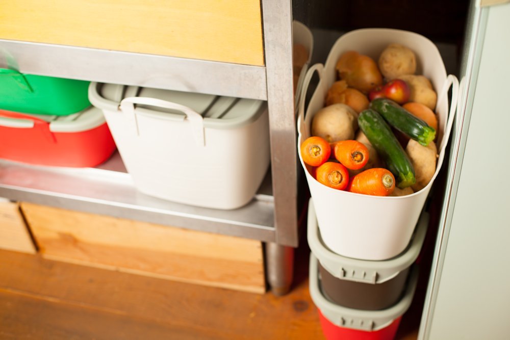 If you use an optional lid (on baquet) you can stack them, so you can increase it to both vertical and horizontal.