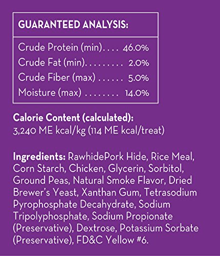 -. Feature : Slow smoked to seal in the irresistible flavor / Promotes clean teeth and healthy gums through the natural action of chewing / Provides the variety your dog craves / Made with the highest quality ingredients / Packaging may vary