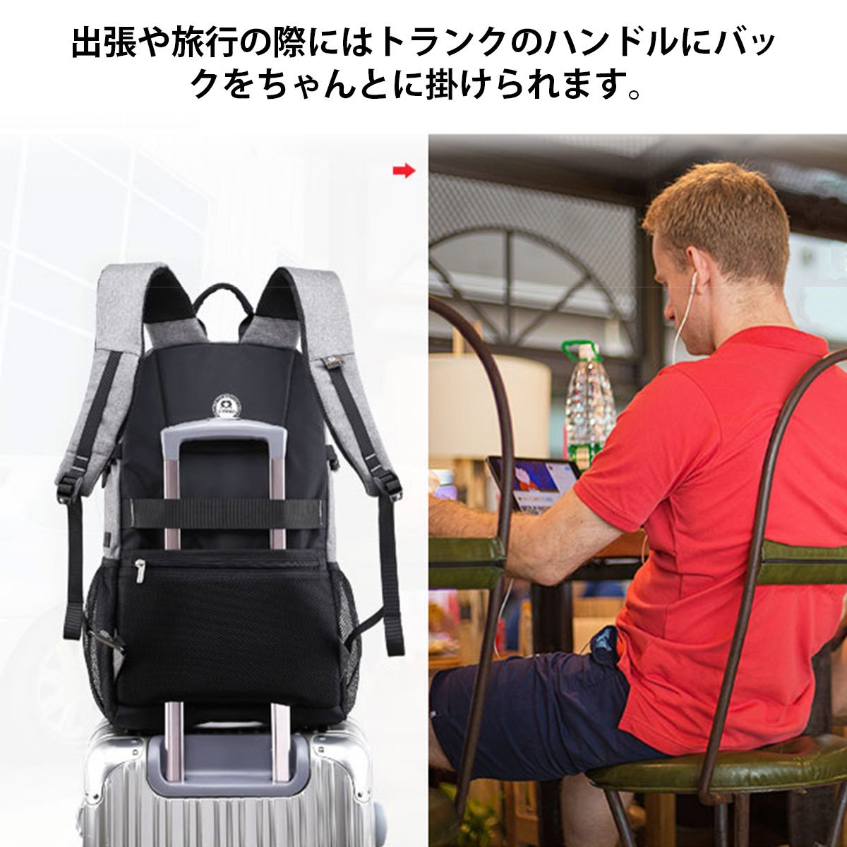 4, Below is arranged the strap which puts yoga bud and camera tripod etc.