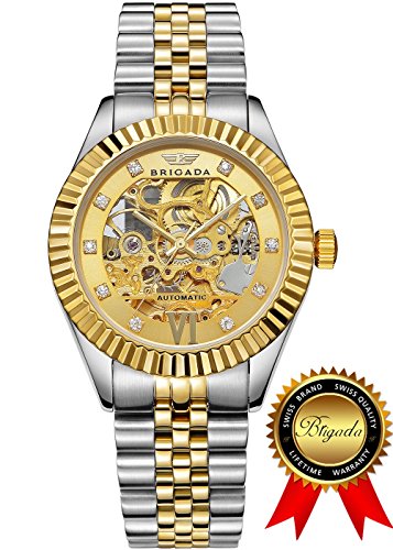 -. Title : BRIGADA Swiss Watches Luxury Gold Automatic Watches for Men, Nice Mechanical Men's Watches