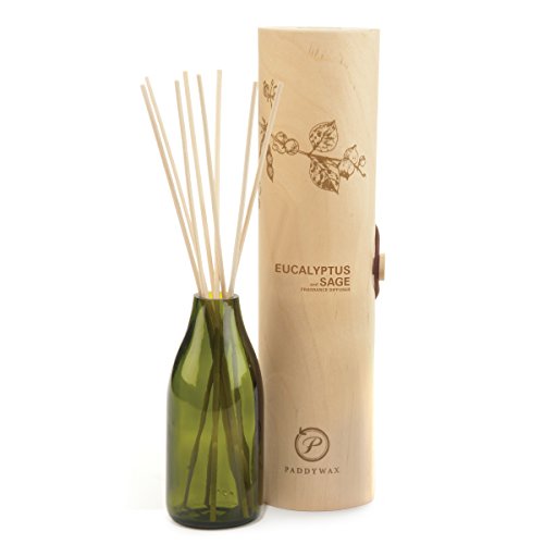 Paddywax eco green diffuser features an earth-freindly recylced glass vessel packaged in a smartly designed wood veneer tube