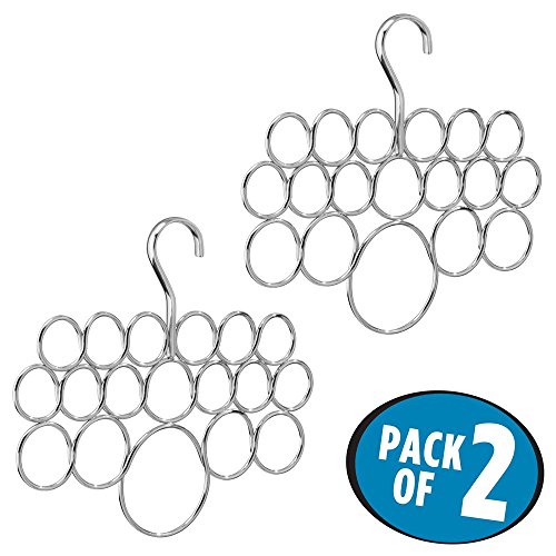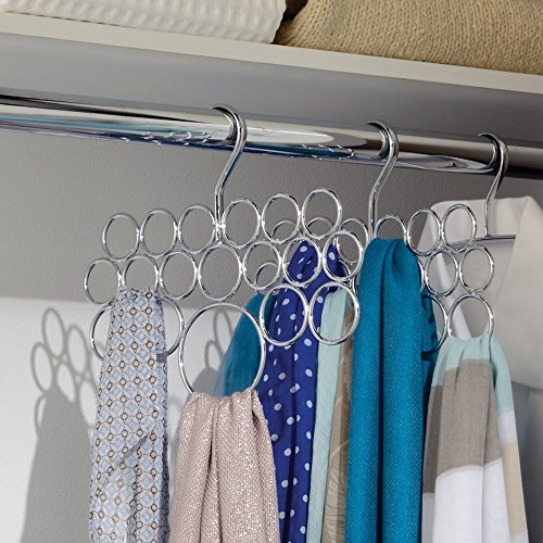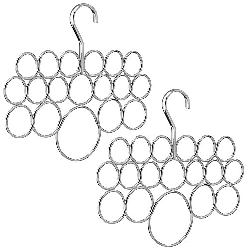 InterDesign Axis Scarf Hanger - Storage Organizer Rack for Scarves, Neck Ties, Belts, Shawls, Pashminas and Accessories - 18 Loops, Chrome, Set of 2