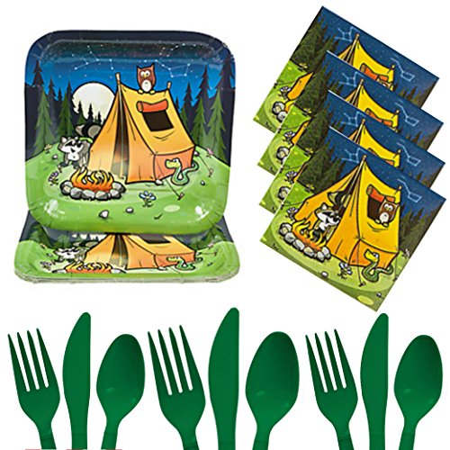Camping Party Supplies For 16 - Plates, Napkins, Cutlery - Camping Birthday Party Supplies Party Pack Gear - Toddlers, Boys, Girls, Kids, Adults Bundle