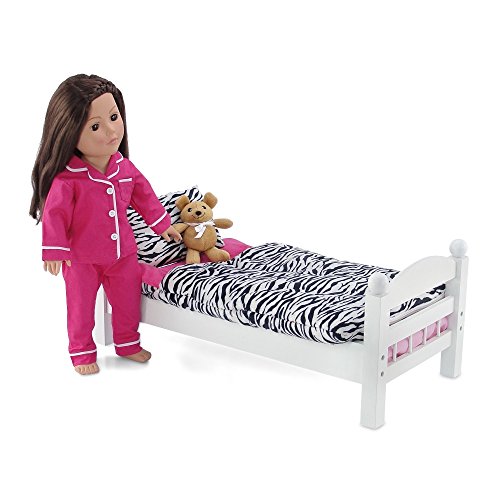 - Your doll will sleep well in this perfectly classic, bright pink and white doll PJ set with beautiful detailed trim and real pocket!
